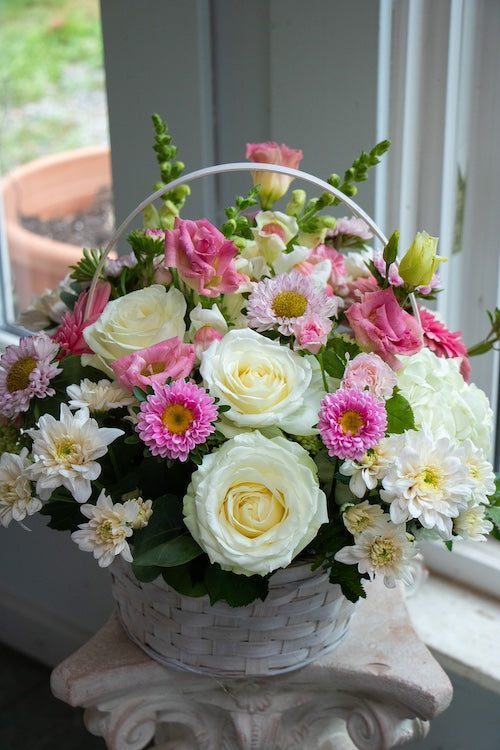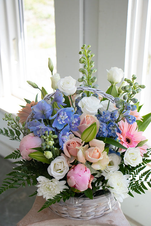 Each basket is lovingly arranged with locally grown, fresh seasonal flowers, gathered daily from trusted farms and markets in Maple Ridge and surrounding areas. The design reflects our signature style — soft, natural, and heartfelt — while allowing nature to lead the way.